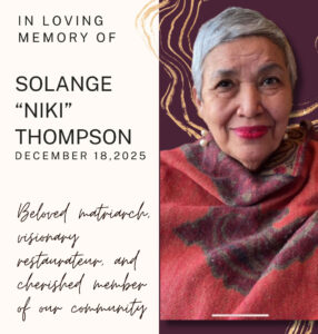 It is with profound sadness we announce the passing of our beloved matriarch, Solange “Niki” Thompson. A giving, loving and dedicated woman, Niki passed away